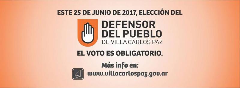 29/05/2017 - ELECCIONES A DEFENSOR DEL PUEBLO: PADRONES DISPONIBLES EN LA WEB El Gobierno de la Ciudad dispuso en su sitio web institucional www.villacarlospaz.gov.ar los padrones electorales oficiales para las elecciones a Defensor del Pueblo y Defensor de Pueblo Adjunto que tendrán lugar el próximo domingo 25 de junio de 2017. Cliqueando sobre la ventana "consulte donde votar" y a través de su número de DNI los vecinos de la ciudad pueden acceder a las escuelas y mesas donde deberán emitir el sufragio, que tiene carácter obligatorio. Link: www.villacarlospaz.gov.ar/sistemas/votacion/ |