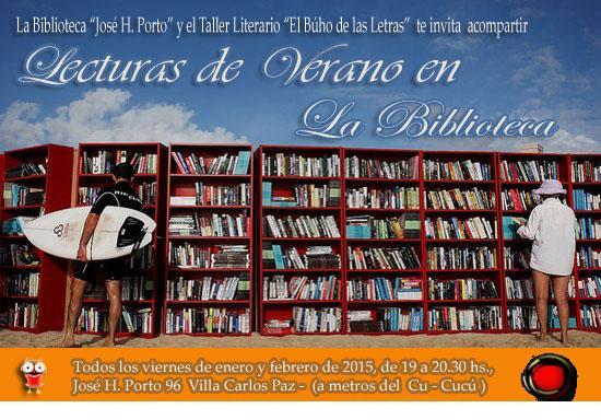 31/12/2014 - LECTURAS DE VERANO EN LA BIBLIOTECA Como parte de las acciones destinadas a fomentar la participación y la adhesión de nuevos socios, la Biblioteca “José H. Porto” y el Taller Literario “El Búho de las Letras” han organizado para los meses de enero y febrero, las jornadas denominadas “Lecturas de Verano en la Biblioteca”. Las mismas se llevarán a cabo todos los viernes de enero y febrero de 2015, a partir del próximo viernes 9 de enero de 19 a 20.30 hs., en las instalaciones de la institución (José H. Porto 99). Durante estas jornadas se compartirá la lectura y comentario de obras de la literatura clásica, contemporánea y bestsellers, de diversos géneros y autores, que integran el conjunto de libros de la biblioteca. Acompañarán la lectura, como invitados especiales, narradores orales, músicos, actores y escritores. La entrada será libre y gratuita. Los asistentes pueden traer su equipo de mate para compartir. |