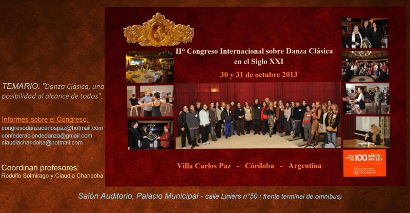 18/10/2013 - II CONGRESO INTERNACIONAL SOBRE DANZA CLÁSICA EN EL SIGLO XXI La edición 2013 del “II Congreso Internacional sobre Danza Clásica en el Siglo XXI”, con su temática “Danza Clásica, una posibilidad al alcance de todos”, ha sido declarada de interés municipal. La misma se realizará los días 30 y 31 de octubre en el Salón Auditorio de la Municipalidad y contará con la presentación de 12 ponencias originales sobre trabajos investigativos realizados por docentes de danza, profesionales en el área salud, especialistas en el área pedagógica y materias afines. Incluirá además Clases magistrales, que de manera práctica, desarrollarán los últimos avances del análisis del movimiento y metodologías de la enseñanza. Invitamos a los amantes de la danza en general y a todos los maestros de danza, para compartir estas jornadas y sumarse a numerosos colegas que vienen del interior del país y de países limítrofes. Para solicitar mayor información escribir a: |