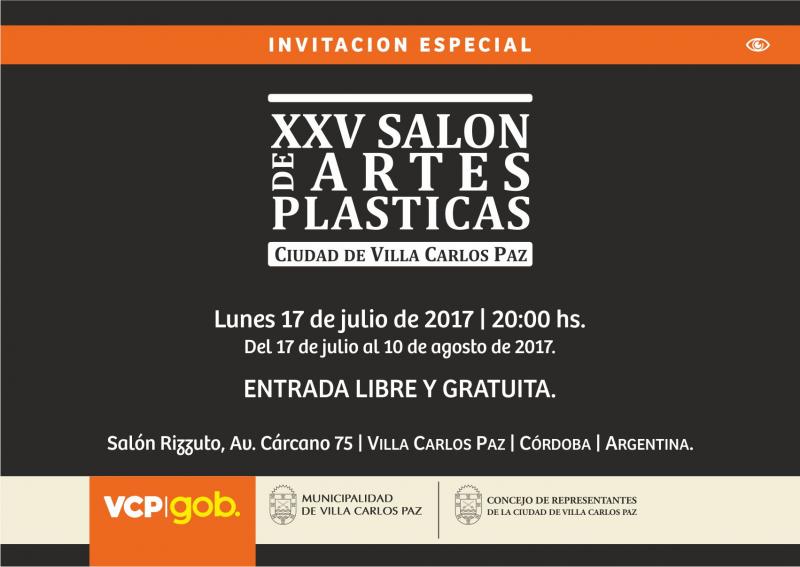 12/07/2017 - XXV SALÓN DE ARTES VISUALES CIUDAD DE VILLA CARLOS PAZ: ENTREGA DE PREMIOS El Gobierno de la Ciudad a través de la Dirección de Cultura invita a los vecinos a participar de la entrega de premios correspondiente al 25º aniversario de la realización del Salón de Artes Visuales Ciudad de Villa Carlos Paz. La misma tendrá lugar el día lunes 17 de julio a las 20:00 hs en el Salón Rizzuto (Av. Cárcano 75), inaugurando así la exhibición que permanecerá abierta al público hasta el día miércoles 16 de agosto. Jurado del XXV Salón de Artes Visuales Ciudad de Villa Carlos Paz El Jurado de selección y distinciones estará integrado por Jorge Oscar Torres, Natalia Monaco, y Cristian Abel Brossard, quienes acreditan reconocida idoneidad para desempeñar dicha tarea. Además Sylvia Lidia Akermann será la veedora designada por la Dirección de Cultura del Municipio. |