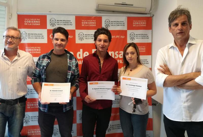 27/12/2017 - SE PRESENTÓ EL GANADOR DEL FONDO EDITORIAL 2017 La Dirección de Cultura de la Municipalidad de Villa Carlos Paz presentó esta mañana a Ezequiel Nicolás Oregaen, ganador del programa Fondo Editorial 2017 en el género Guion Unitario para Televisión. El joven carlospacense fue elegido por el jurado conformado por la Licenciada Constanza Paintner, el concejal Walter Gispert, y el actor Damián Grassi. El ganador editará su libro y su guión unitario será filmado por Carlos Paz TV. En la ocasión, Ezequiel expresó: “La idea principal más que entretener es mostrar lo que se vive y lo que la gente pueda llegar a pasar. Es la primera historia que escribo donde volqué todo lo que viví, estoy muy agradecido de haber ganado este concurso”. Por su parte, el Director de Cultura Daniel Grana indicó: “Nos queda la satisfacción de abrirnos a otro género, y que alguien tan joven como Ezequiel haya podido expresarse, y en este caso tiene que ver con su historia de vida. El arte transforma, estamos en un momento trascendental para los jóvenes, ojala todos se animen y puedan expresarse”. |