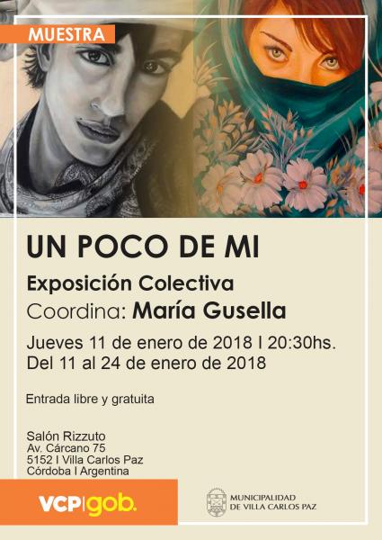 09/01/2018 - AGENDA CULTURAL El Gobierno de la Ciudad a través de la Dirección de Cultura invita a los interesados a participar de las siguientes actividades: Martes 9 de enero | 19:00 hs Charla informativa “Encuentro vivencial” dictado por la Lic. María Lilia Ledesma en el Salón Rizzuto (Av. Carcano 75). Entrada libre y gratuita. Jueves 11 de enero | 20:30 hs. Ciclo de conciertos a realizarse en el tradicional Cucú coordinado por el CEM con intervención de artistas locales. | 20:30 hs. Inaugura la muestra colectiva “Un poco de mí" coordinado por la artista plástica María Susana Gusella en el Salón Rizzuto (Av. Cárcano 75). Se podrá visitar hasta el 24 de enero con entrada libre y gratuita. Viernes 12 de enero | 17.30 a 21:30 hs. Seminario telar “Arboles de la vida” dictado por José Alvarez y Mónica Bujalter en el Salón Rizzuto (Av. Cárcano 75). Consultas al 436400. |