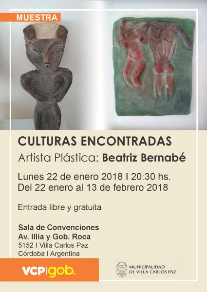 22/01/2018 - AGENDA CULTURAL El Gobierno de la Ciudad a través de la Dirección de Cultura invita a los interesados a participar de las siguientes actividades: Lunes 22 de enero | 20:30 hs. Inaugura la muestra “Culturas encontradas” de la artista plástica Beatriz Bernabé en la Sala de Convenciones (Gob. Roca y Av. Illia) con entrada libre y gratuita. Martes 23 de enero | | 20:30 hs. Ciclo de verano “Cine en tu barrio” con la clásica actividad de proyección de películas con entrada libre y gratuita. En esta ocasión, se realizará en la Plaza Manuel Belgrano (barrio Miguel Muñoz A). Miércoles 24 de enero | | 14:00 de 17:00 hs. Clase de Zumba y Salsa a cargo del profesor Giovanni Pérez en el balneario El Fantasio. Abierto a todo público con entrada libre. Jueves 25 de enero 14:00 de 17:00 hs. | Clase de Zumba y Salsa a cargo del profesor Giovanni Pérez en el balneario Sol y Río. Abierto a todo público con entrada libre. 20:30 hs | Inaugura la muestra colectiva “Verano arte 2018 3° edición” organizada por Art Meetings y coordinada por Miguel Ángel Gatti. Tendrá lugar en el Salón Rizzuto (Av. Cárcano 75) con entrada libre y gratuita. Viernes 26 de enero 14:00 de 17:00 hs. | Clase de Zumba y Salsa a cargo del profesor Giovanni Pérez en el balneario Playas de Oro. Abierto a todo público con entrada libre. 20:30 hs. | Ciclo de verano “Cine en tu barrio” con la clásica actividad de proyección de películas con entrada libre y gratuita. En esta ocasión, se realizará en el Barrio Miguel Muñoz "B". Domingo 28 de enero | 17:00 a 20:00 hs. Clase de Zumba y Salsa a cargo del profesor Giovanni Pérez en la costanera de la ciudad (Gdor. Ferreyra e Illia). Abierto a todo público con entrada libre.