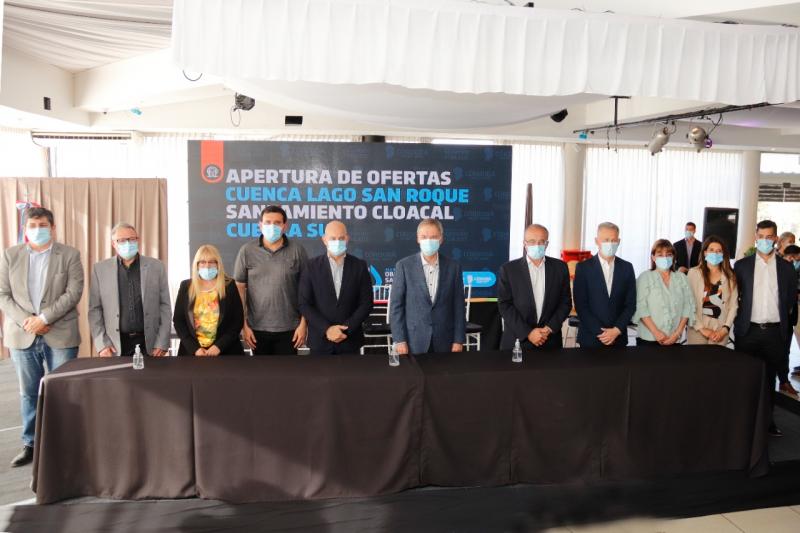 Con la presencia del Gobernador de la Provincia de Córdoba, Juan Schiaretti, el Intendente Daniel Gómez Gesteira, el Presidente de la Agencia Córdoba Turismo Esteban Avilés, el Ministro de Servicios Públicos de la Provincia Fabián López, autoridades provinciales e intendentes regionales se desarrolló esta tarde en nuestra ciudad, el Acto de apertura de sobres de la Licitación Pública para la obra “Saneamiento Cloacal Cuenca Sur- Dique San Roque” lo que permitirá avanzar en la ejecución de redes domiciliarias de líquidos cloacales en los barrios Playas de Oro, Sol y Río, El Fantasio y Solares de las Ensenadas de nuestra ciudad.